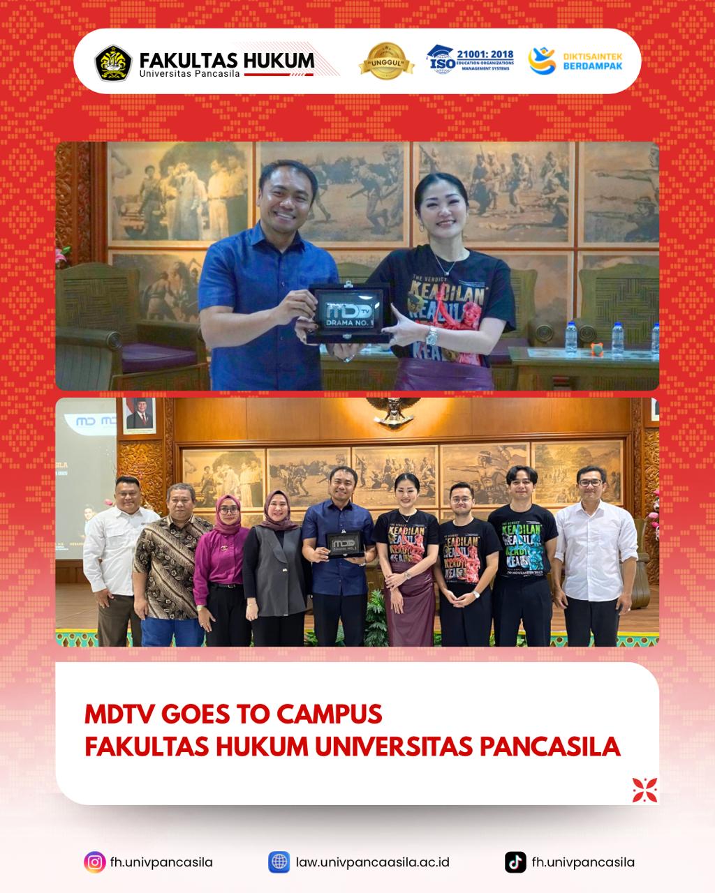 Fakultas Hukum Universitas Pancasila (FHUP) menjadi tuan rumah kegiatan MDTV Goes to Campus yang diselenggarakan di Aula Nusantara FHUP. Kegiatan ini merupakan hasil kolaborasi antara MD Entertainment dan Fakultas Hukum Universitas Pancasila, dengan tujuan memperkenalkan nilai-nilai hukum dan keadilan melalui media film kepada kalangan akademisi dan mahasiswa.
